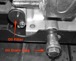 Place a pan under engine near the drain plug and take of the oil filter and drain plug, this step should be careful because there is an o-ring on oil filter, it is better to put some oil on oil filter to reduce the frication when you take it of.